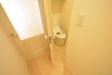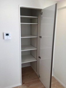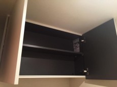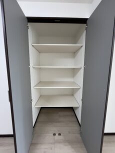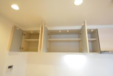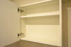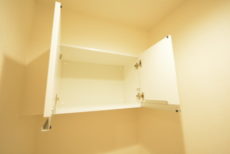 こちらの上部にもトイレットペーパーのストックや掃除用具の保管に便利な吊戸棚も設置されています。