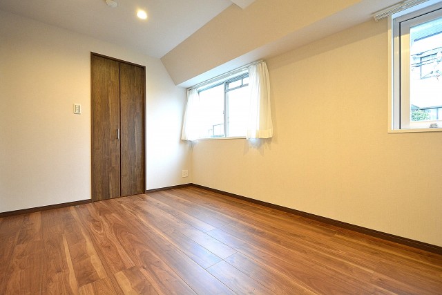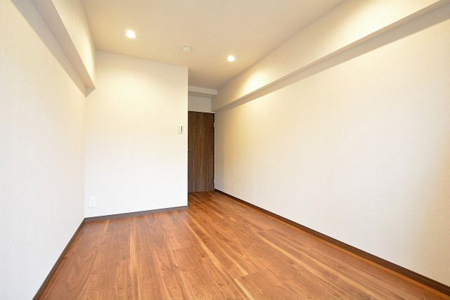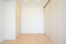 廊下に面した約4.0帖の洋室1。窓はありませんが、暗く静かな所で眠りたい方ならベッドルームにピッタリだと思いますよ。クローゼット付き。