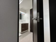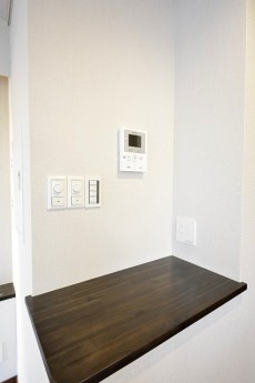 玄関ドア横にはモニター付きインターホンが設置されて、お部屋の中から訪問者を確認する事が出来ます。映像で確認してから応対するかを決められるのは便利ですね。