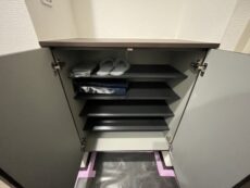 シューズボックスはロータイプとトールタイプがひとつづつ。トールタイプは収納力抜群、棚を調節すればブーツなどでも収納可能ですよ。ロータイプの上はカウンターになっていて、鍵やコインを置いたり、花や観葉植物、写真たてなどでインテリアを楽しんだりが出来ます。玄関を綺麗にしておくと、良い運気が舞い込んで来そうですよね。