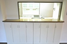 カウンターの下には備え付けの棚がありました。小物類を中心にいろいろ収納できて便利そう♪