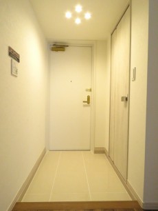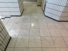 共用廊下はツルリとした大理石調のタイル貼りで高級感たっぷり。