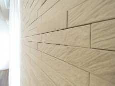 リビングの一部の壁面には調湿・消臭効果のあるエコカラットが使われています。生活臭もこれで軽減できるはず!扉の両脇には収納スペースが2か所設けられており、掃除道具や日用品のストックはもちろん、子供のおもちゃなど色々仕舞っておくのに重宝しますね。