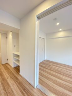 本来の約6帖の洋室に戻ります。引き戸はドアによるデッドスペースもできないので、お部屋のスペースを無駄なく使うことが出来ますよ。LDKと同じナチュラルテイスト。家具も合わせやすそうですね。
