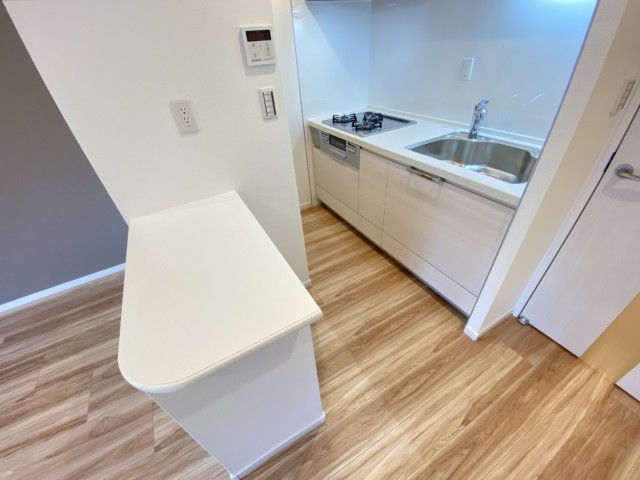 お料理を出したり、下げ物をしたりに便利なカウンター。忙しい朝はこちらで食事を済ますこともあるかもしれませんね^^;)