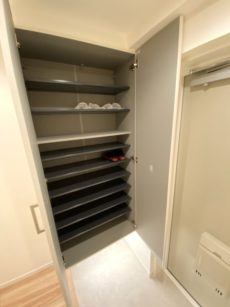 廊下左手側にはトールサイズのシューズボックスがあります♪♪棚が可動式になっていますので、ブーツの収納もOK(´∀`*)