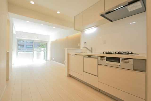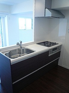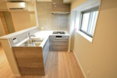 キッチンに窓って嬉しいですよね。換気の事もありますし、キッチンが明るいとテンションが上がりますから(笑)ただし、この窓の外側にはすりガラスの衝立の様な物が設置されていて外を眺めたりは出来ません。もちろん光と風は入って来るのでご安心を。