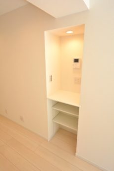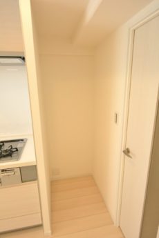 シンクの左側には冷蔵庫を置ける場所があります。こちらに冷蔵庫が置けるとキッチンスペースはよりゆとりができますね。