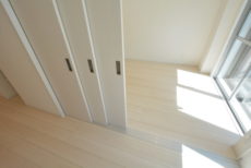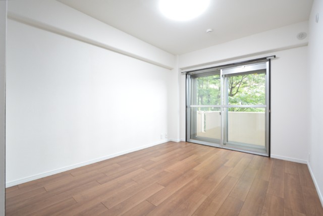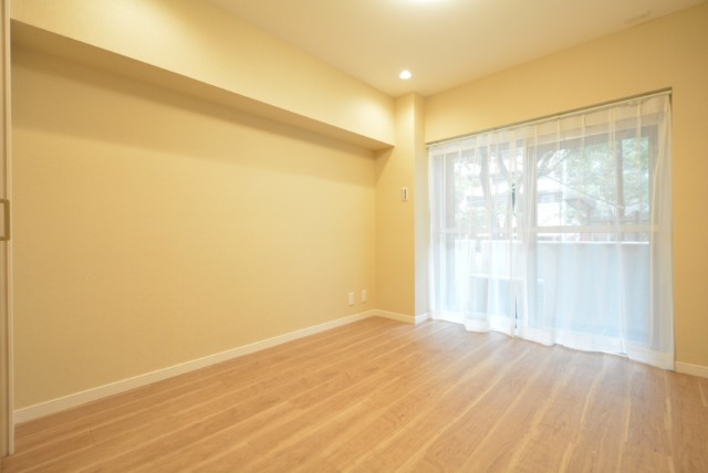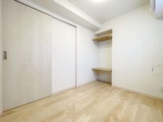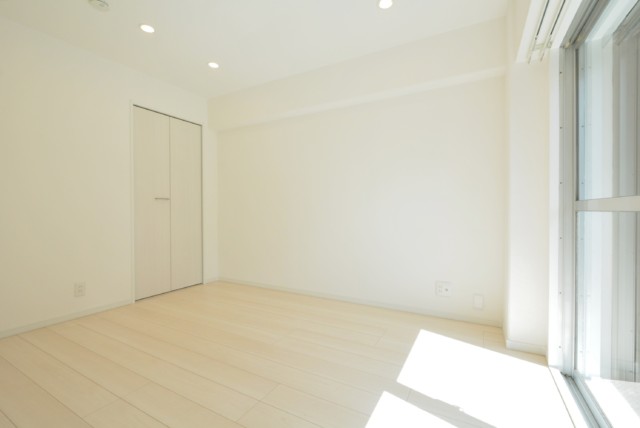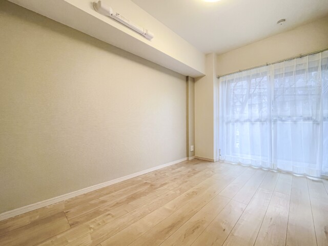 こちらは約5帖の洋室。隣と同じ南西向きバルコニーに面したお部屋です。シンプルな色使いで家具も合わせやすそうですね。