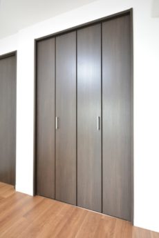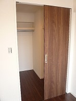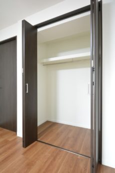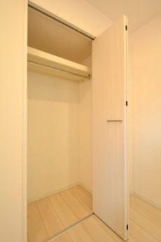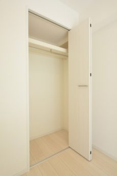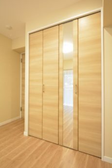 収納は間口が広くて使いやすそうなクローゼット。扉には姿見が付いていて身だしなみチェックに便利です。