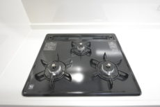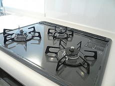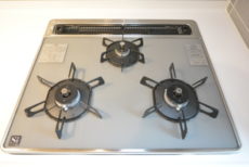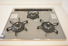 コンロは3口。タイマーや温度設定なども出来る高機能タイプです。いつの間にガスコンロでこんな事が出来るようになったんでしょうか?いろいろと知らない所で世の中進歩しているんですね^^;