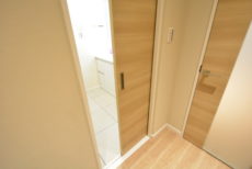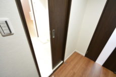 玄関入って右手にある引き戸です。開け閉めに場所をとらなく出入りしやすいですね。