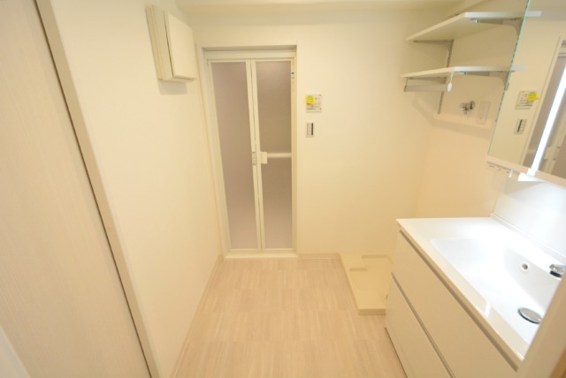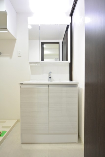 【洗面室:三面鏡付き洗面化粧台・洗濯機スペース】