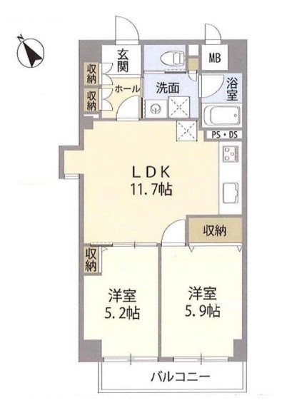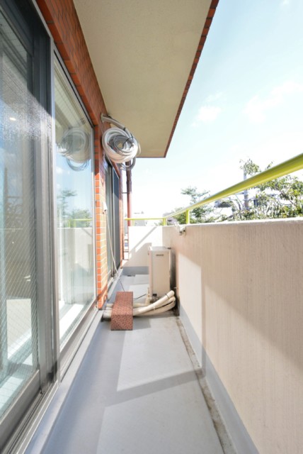 広さは3.9㎡、南西向き。二部屋にまたがるバルコニーです。物干し金具が低めの位置に付いていますので、お洗濯物を干す時に路上を歩く人の目が気になる事もありません。