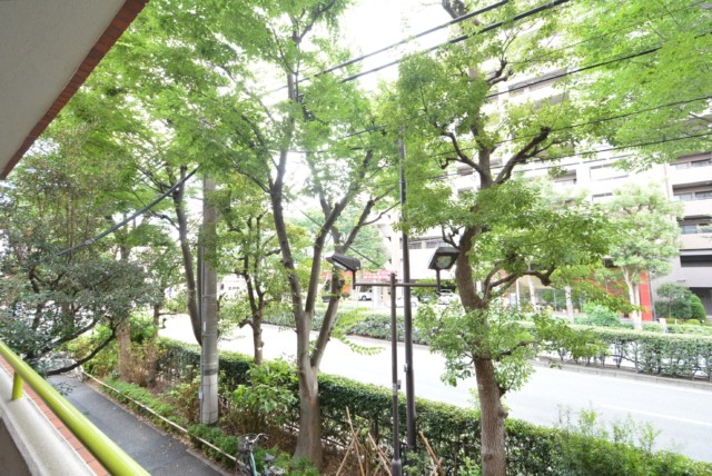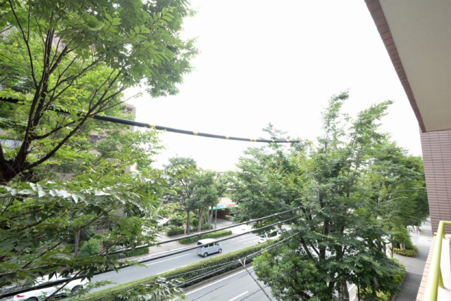 バルコニーから外の様子です。街路樹が茂っていてまるで公園の中にいるようですね。絶景というわけではありませんが、季節感があって個人的にはとても好きな眺めです(^^)