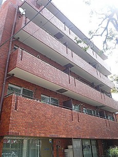 環七通り沿いに佇むレンガ調のタイル貼り「フジタ野沢マンション」外観です。