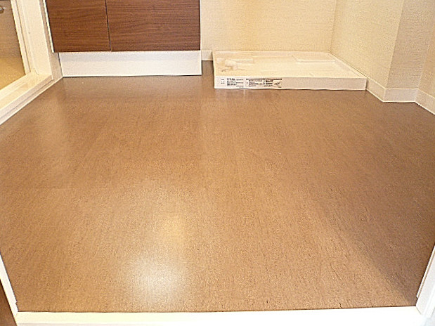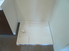 洗濯機置き場です。洗剤などは洗面台下部の収納に置けると使い勝手もよさそうです。