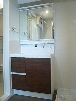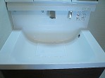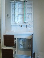 LIXIL製洗面化粧台です。みやすい三面鏡をあけるとキャビネットになっています。