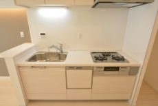 キッチンは人気のカウンターキッチン。コミュニケーションが取りやすく、調理中も会話も弾みそうです。キッチン内が目立たないのもいいですね。では、キッチンを詳しく見ていきましょう。