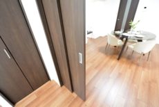 仕切り戸は引込式の吊り扉。床にレールが無かったり、扉が収納されたりする事で開放した時にお部屋の一体感が増します。