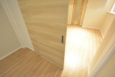 左手に上がりますと玄関収納とお部屋への扉があります。