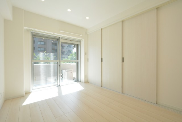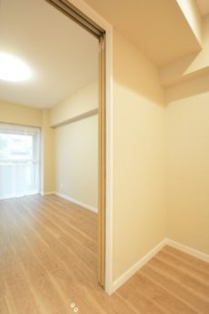 閉めれば約5帖の洋室に戻ります。収納はありませんが、南西向きバルコニーに面した明るいお部屋ですよ。