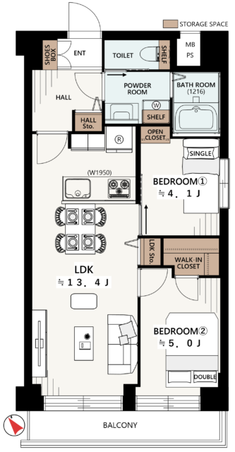 【LDK:約13.4帖・南西向き・コンセント付きリビング収納】