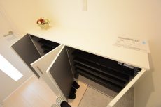 右手にはシューズボックスが付いていますよ!上部はカウンターになっているのでインテリアなどでオシャレに飾り付けをすることができます( ̄∀ ̄*)