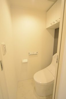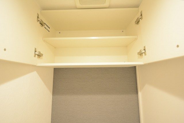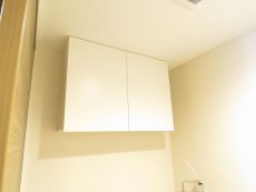 吊戸棚が付いているのでトイレットペーパー等の消耗品などの収納にも困りませんよ。