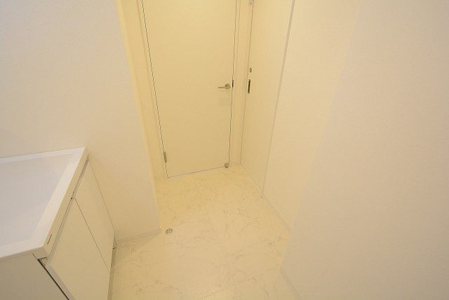 さらに玄関方向へ廊下を進み・・・玄関扉の斜め向かいの扉は洗面室です。