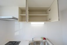収納は吊戸棚、カウンター下にと豊富にあります。