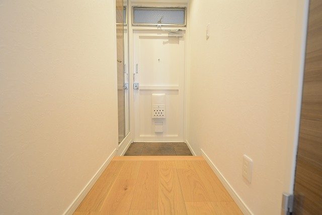 ではお部屋の中へ入ってみましょう。室内はリノベーション済みでピカピカです♪ちなみに玄関扉をあけると正面は壁です。宅急便や出前が来ても、お部屋の中を見られる心配はありません。
