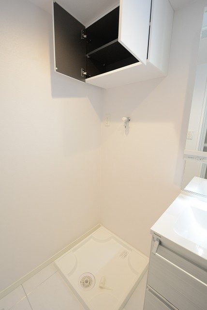 掃除道具やサニタリー用品の収納に便利な吊戸棚もついています。
