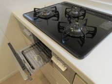 2口のグリル付きガスコンロが付いています。