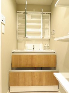 収納は洗面台下とミラーキャビネットになっていました。細かい物が多くなりがちな洗面周りには、ミラーキャビネットの様な収納が便利ですよね。