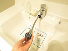 水洗はハンドシャワータイプです。洗面ボウルを流したり、寝ぐせを直したり(笑)