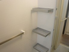 3つのトレイもあり、こちらにはトリートメントやボディーソープなど置けますね。