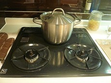 大きなシンクは洗い物もスムーズにできますね。とくにお鍋をした後の土鍋などガシガシ洗いたいときなど嬉しいです。3口コンロでは隣で炒めて隣で茹でると手際良くできそうです。
