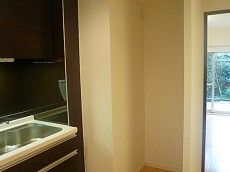 調理台後ろは、冷蔵庫や家電ラック、食器棚などのスペースになっていました。