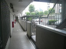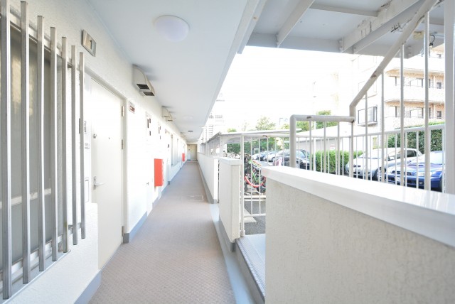 エントランスを抜けて明るい外廊下を進みます。外は駐車場や駐輪場。敷地内ですので、知らない人と顏があったりはしないのでご心配なく(^^)