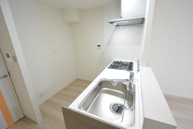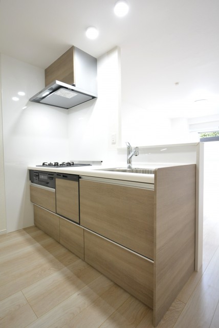 お部屋の雰囲気に合わせた、木目のパネルを使用した調理台です。