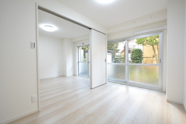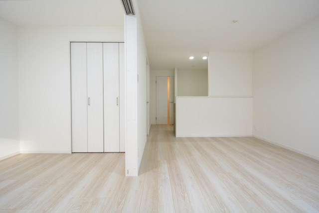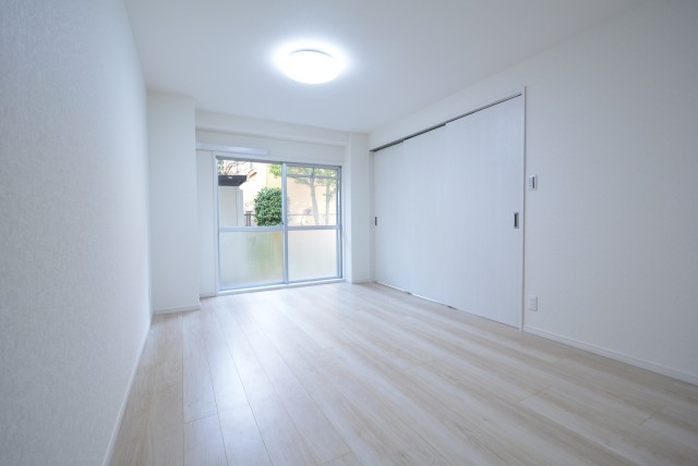 専用庭に面した大きな窓から明るい光が射す、とても明るいお部屋です。廊下と同じように無駄な装飾のないシンプルな内装になっていて、どんな家具でも合わせられそうです。自分好みにお部屋を作っていけるのは嬉しいですよね♬