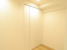 リビンギダイニグキッチンを出て今度は左側へ。玄関方向へ戻りながら残りのお部屋を見ていきましょう。写真の仕舞っている扉は約5.0帖の洋室です。