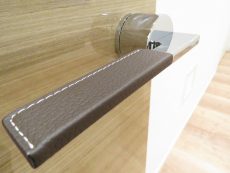 そうそうそう。どのお部屋もなんですが、ドアのぶは皮のカバーがついていて、おしゃれな感じなんですよ~。指紋がつきにくいのがいいですね。