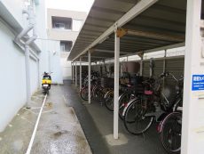 マンション裏手には駐車場、エントランス横には駐輪場がありました。空き状況は変動するのでご内見の際に営業マンに聞いてみてくださいね♪