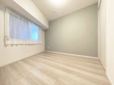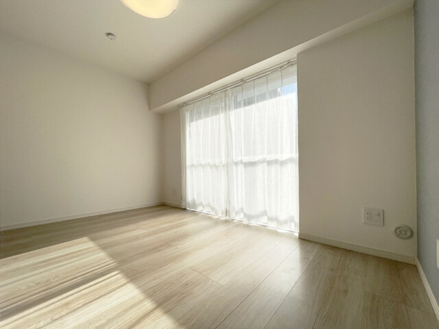 南西向きバルコニーに面した窓から眩しい光が射し込む陽当たり良好なお部屋です。色使いがシンプルなので、ナチュラル系からモダン系まで幅広い家具を合わせることが出来そうですね。