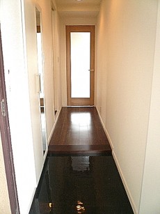 玄関をあがると目の前は廊下。正面を突き当り、左方向へさらに続いています。玄関と廊下の段差も低いので小さいお子様でも一人であがりやすいのではないでしょうか。