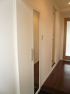 玄関収納です。両開きの片方の扉にはミラーが付いています。
