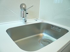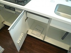 ホワイトな清潔感あるピッカピカのシステムキッチンです。上下にはしっかりと収納!下部にある収納は奥行きもあるので大小あるフライパンやお鍋もしっかりと仕舞えそうです。