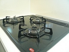 ホワイトなワークトップは調理スペースも確保され、3口コンロでは一気に焼く~煮る~蒸すだって手際よくできそうです!独立したキッチンで新たなレシピに挑戦したいですね!